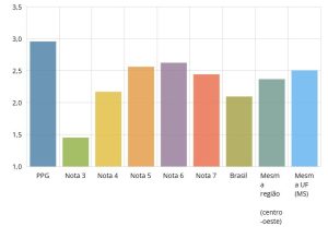 Comparação do IndArtigo médio (esquerda) e média de artigos A (direita) dos docentes permanentes com outros PPGs.